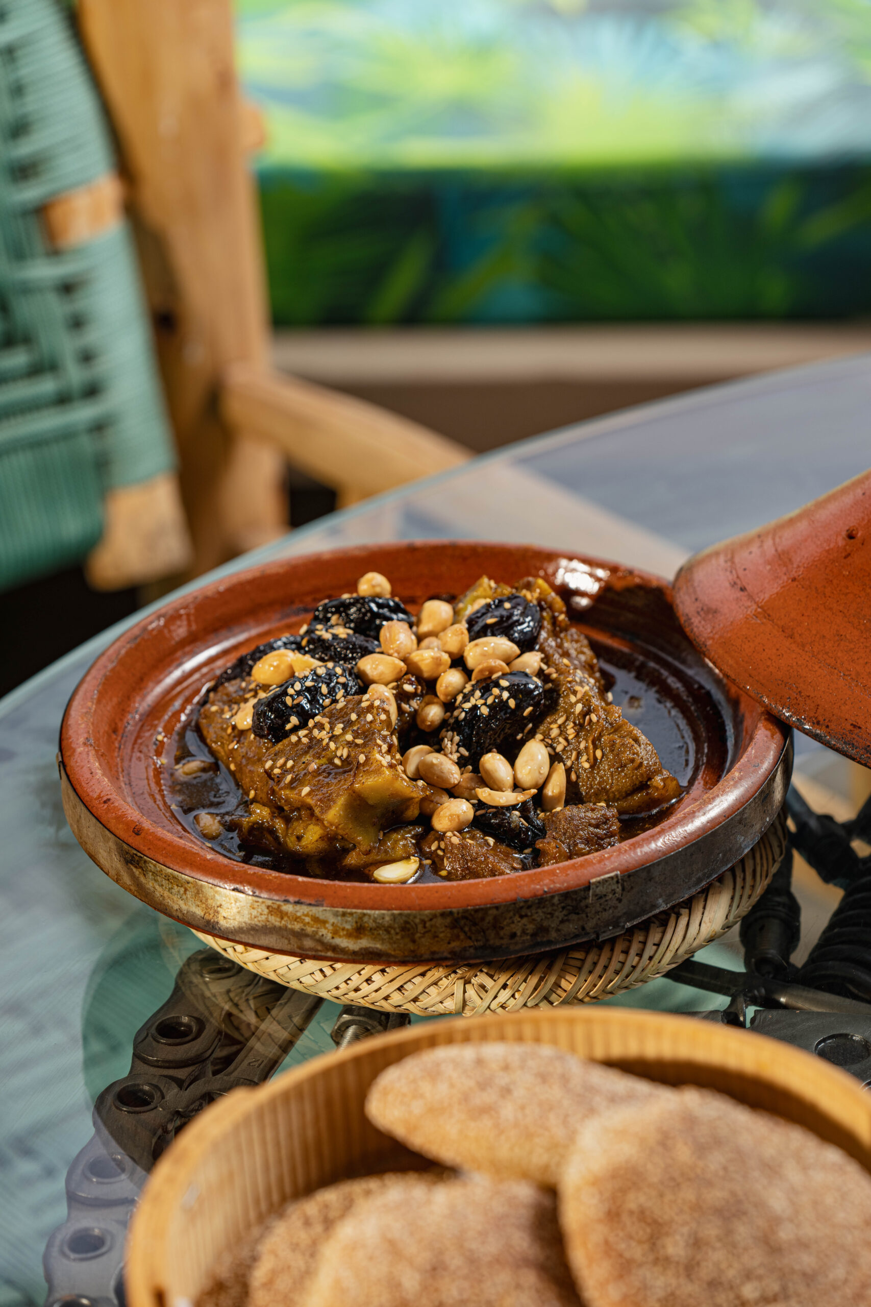 At Manzah el Koutoubia, our menu is a celebration of Moroccan flavors with a modern twist. Each dish is crafted with the finest local ingredients, infusing traditional recipes with contemporary flair. From savory tagines to sweet pastries, our culinary offerings are a feast for the senses. Accompany your meal with our selection of fine wines and cocktails, each curated to complement the flavors of Morocco.